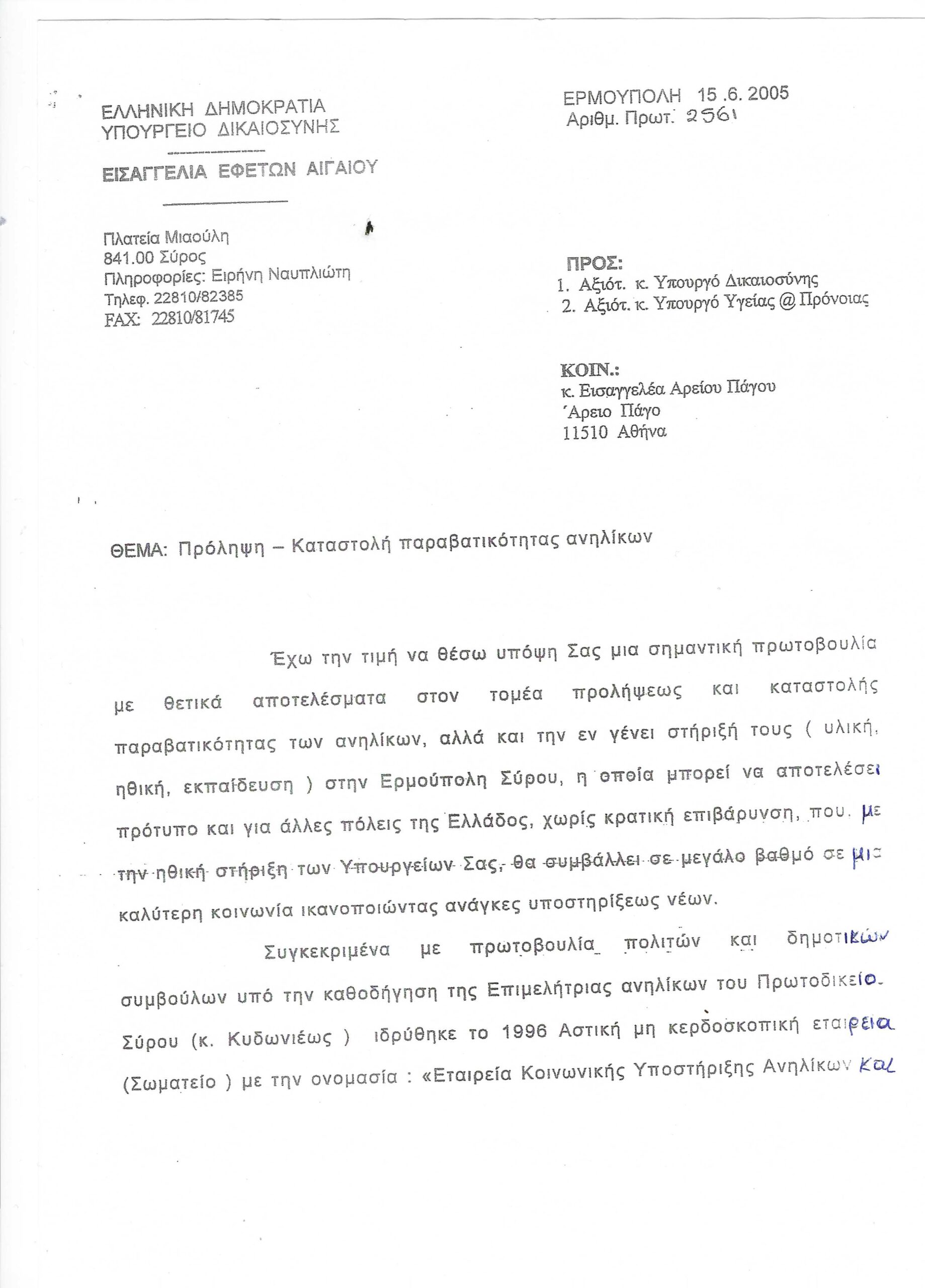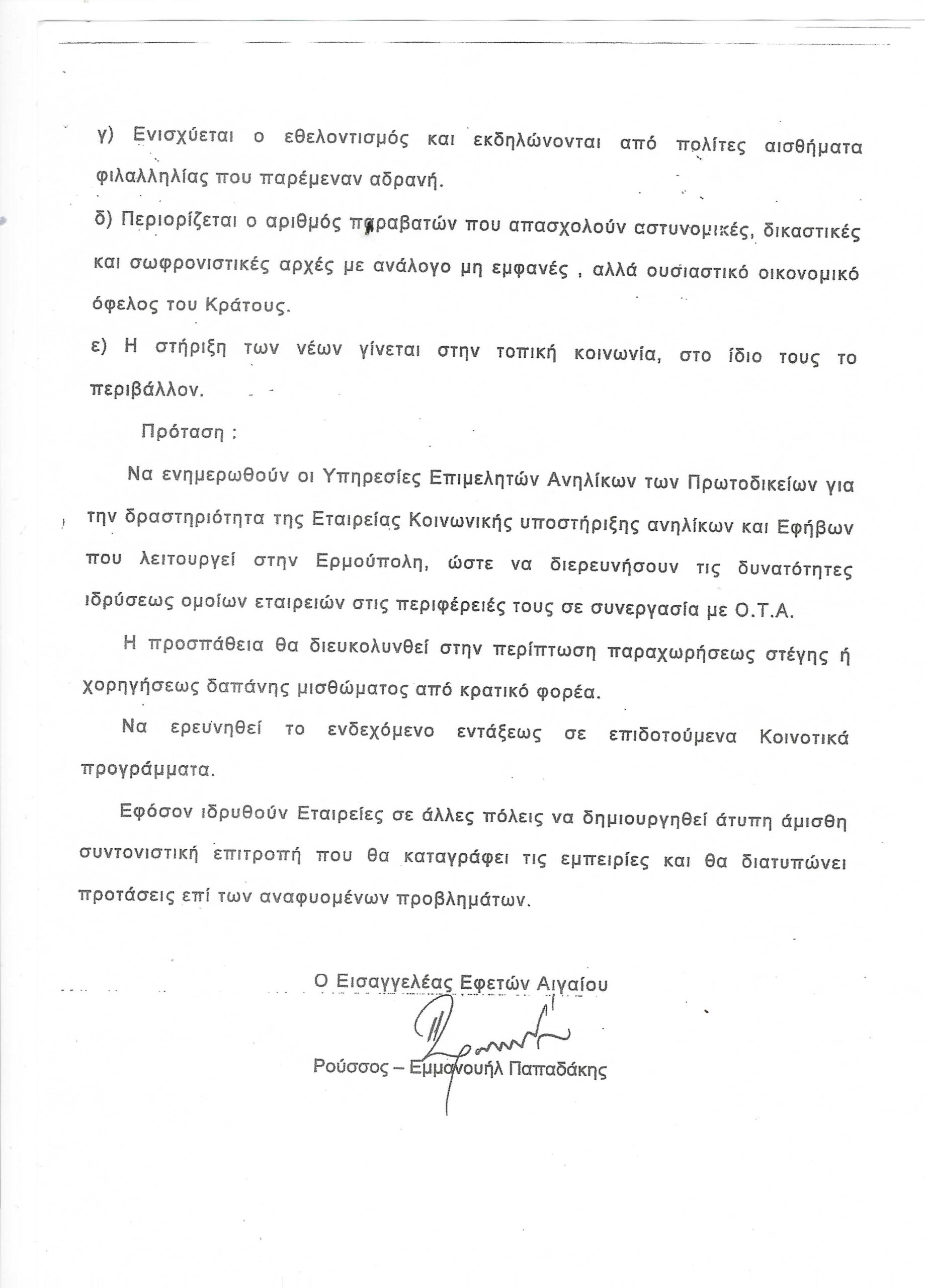 ✓Για ένα χρόνο υλοποίησε το σχέδιο δράσης με τίτλο “ΝΟΤΙΑΣ: Δράση για την υποστήριξη ευπαθών κοινωνικών ομάδων στις Κυκλάδες” στο πλαίσιο του Ε.Π <<Απασχόληση & Επαγγελματική Κατάρτιση>> Μέτρο 2,1 Δράσεις Παροχής Συνοδευτικών Υποστηρικτικών Υπηρεσιών. ΚΠΣ 2000-2006,σε συνεργασία με την “Αρσις” Θεσσαλονίκης-Κοινωνική Οργάνωση Υποστήριξης Νέων.