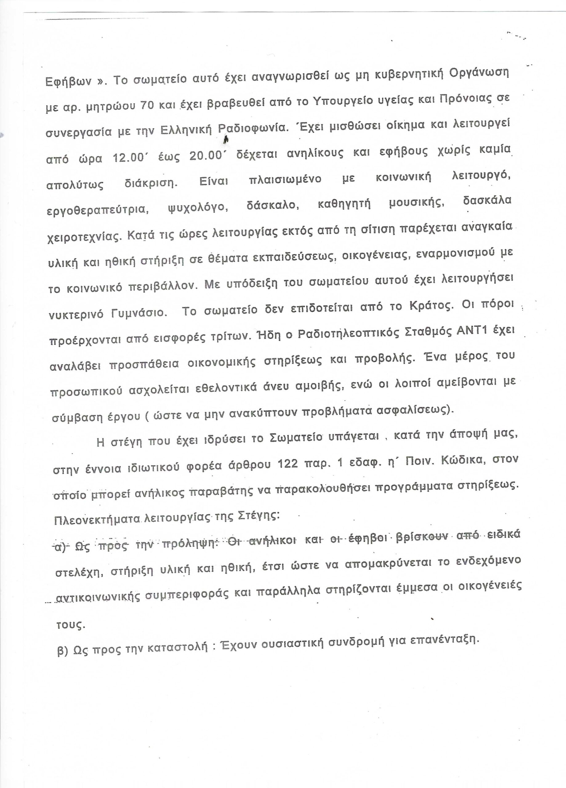 ✓ Έχει σταθερή συνεργασία με το Συνήγορο του Παιδιού, ο οποίος χαρακτήρισε τη “Στέγη” ως φωτεινό παράδειγμα στήριξης ανηλίκων παραβατών.