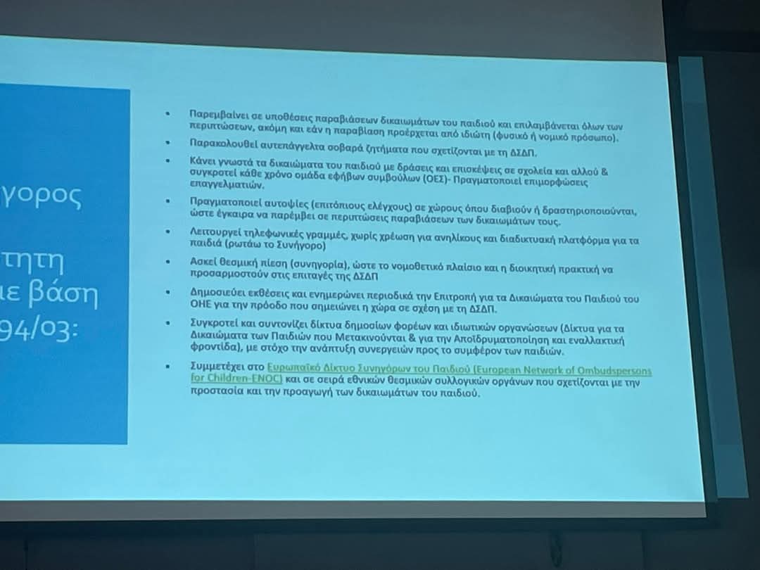 Ομιλία της βοηθού του Συνηγόρου του Πολίτη για τα δικαιώματα του παιδιού