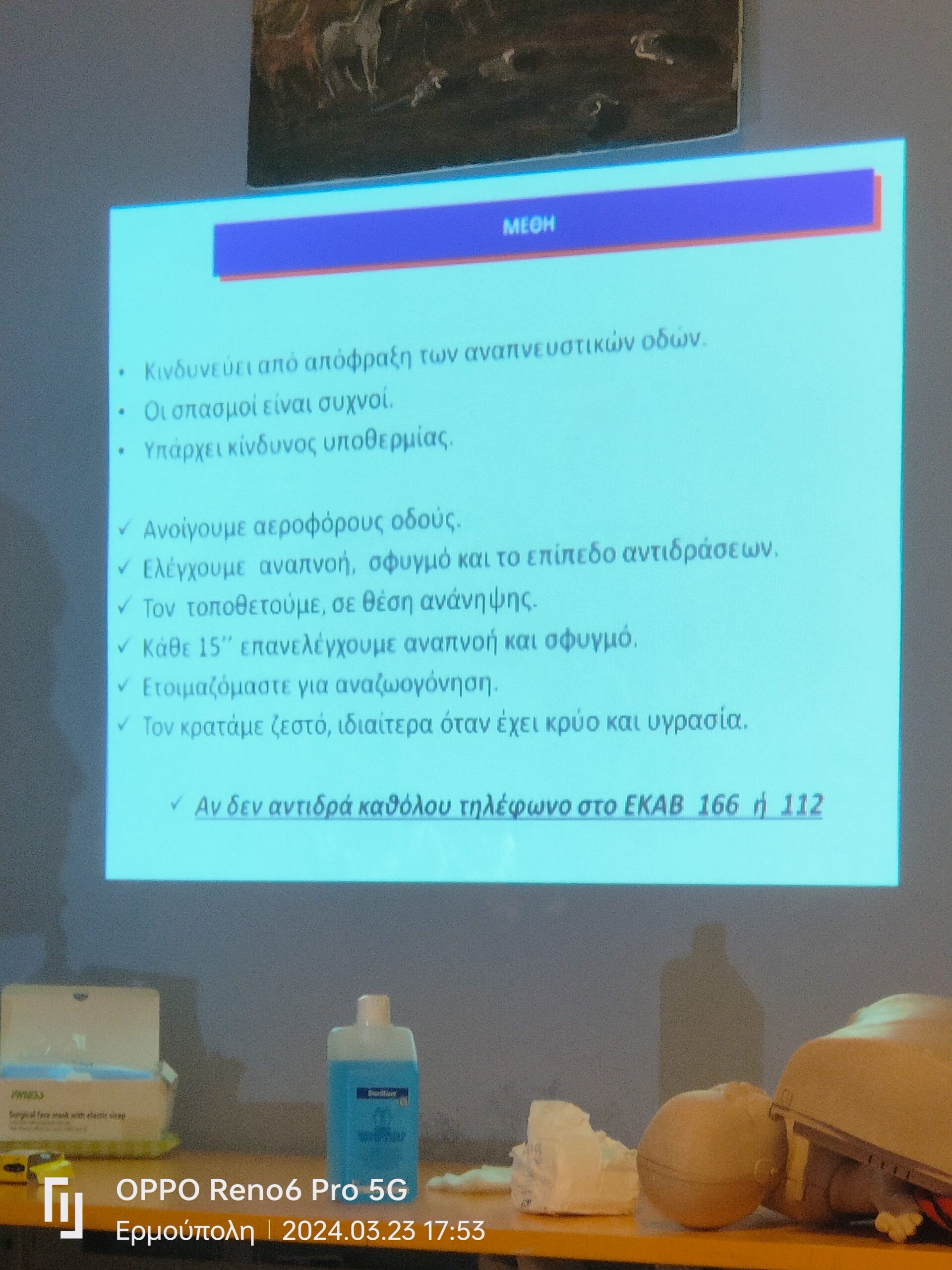 Μαθήματα πρώτων βοηθειών και Καρδιοπνευμονική Αναζωογόνηση (κάρπα). Από το ΕΚΑΒ Σύρου